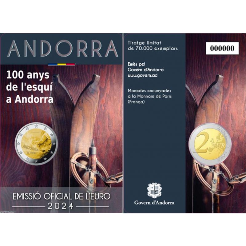 Andorra 2€ commemorative coin 2024 - 100 years of skiing in Andorra