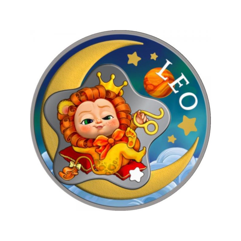 Baby Zodiac. Leo - Republic of Ghana 2 Cedis 2022 1/2 oz silver coin in digital printing