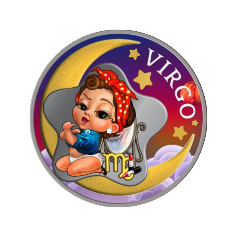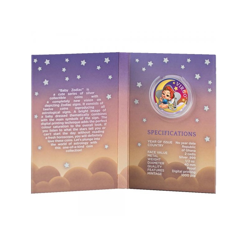 Baby Zodiac. Virgo - Republic of Ghana 2 Cedis 2022 1/2 oz silver coin in digital printing