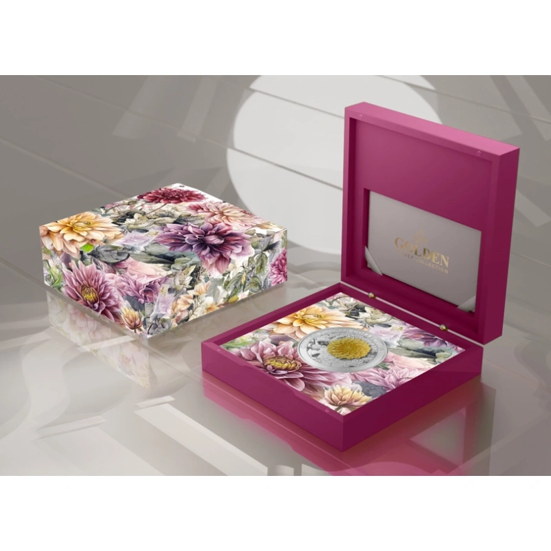 Golden Flower Collection - Dalia. Samoa 5$ 2026 99,9% Silver Coin with 3D Golden Flower. 1 oz.