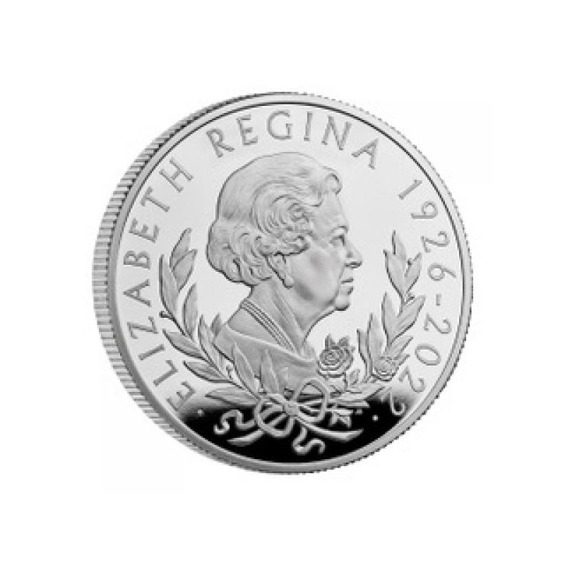 The reverse design features a design created for the 1953 coronation crown coin in poignant tribute to Her Majesty