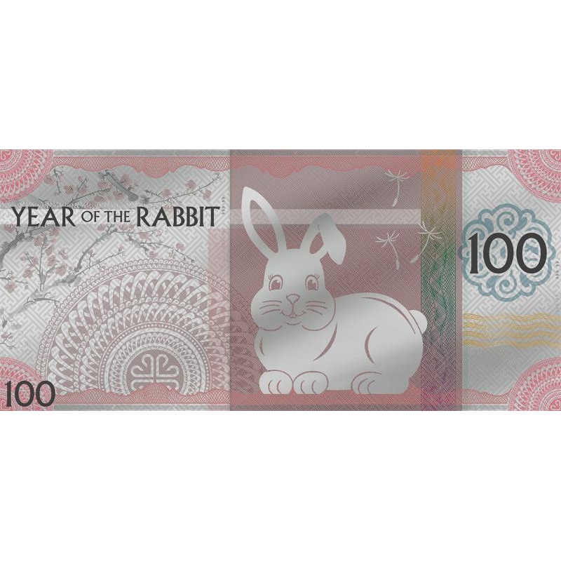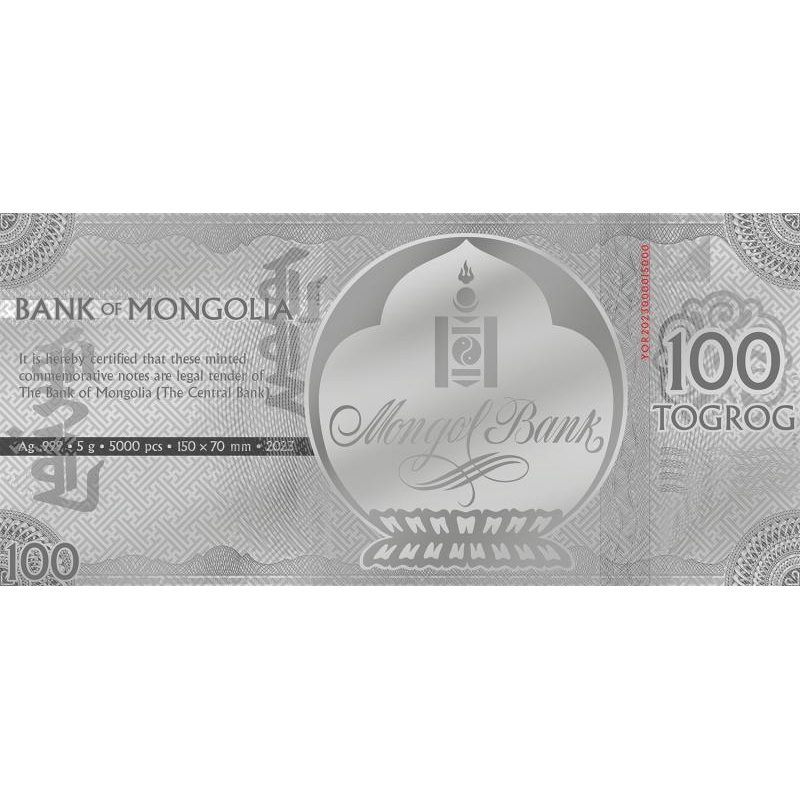 Lunar Year of the Rabbit 2023 Silver note. Mongolia 100 Togrog 2023 99,9% silver, 5 g