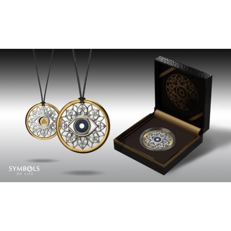 Symbols of Life - Protecting Eye. - Barbados, 10$, 2024., 1 g gold coin /7 g silver pefant, partly gilded, rodium coated,