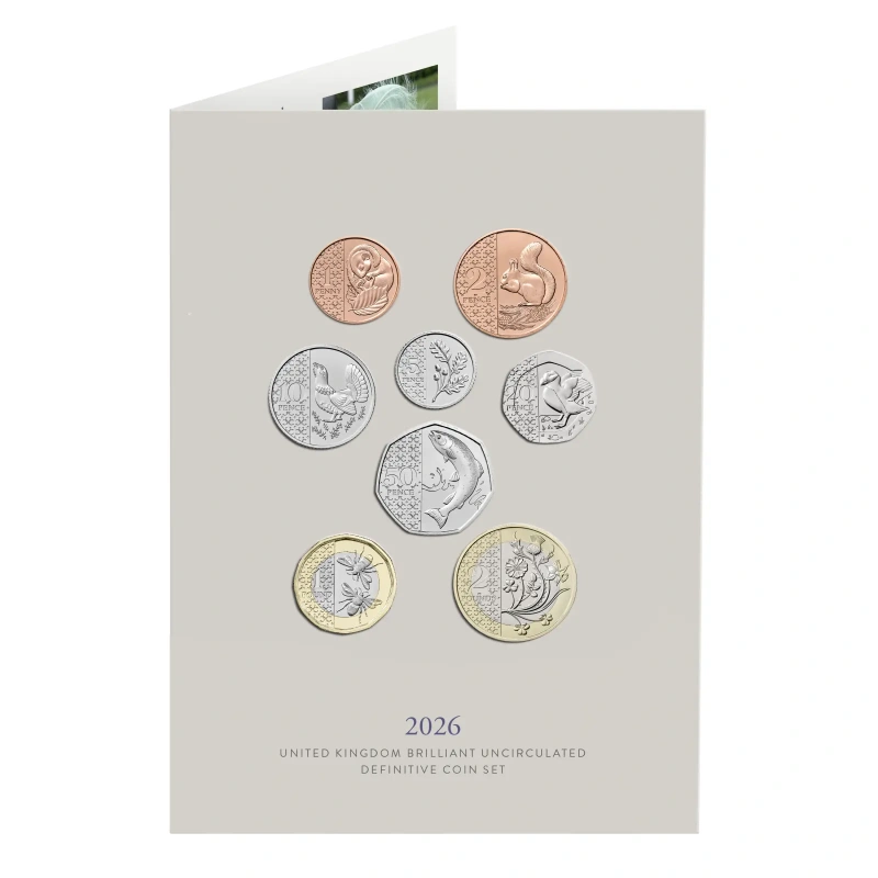 Struck to Brilliant Uncirculated standard in their circulating alloys, this set contains the eight definitive UK coins of 2026. From the 1p through to the £2 coin, the reverse of each coin features the popular designs first issued in 2023 in recognition of King Charles III’s affinity for conservation and the natural world.