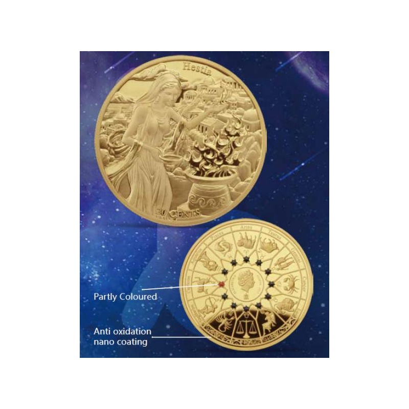 The Twelve Olympians in the Zodiac - Hestia & Capricorn Samoa 0.20 $ 2022 Gold plated Copper/Nickel coin