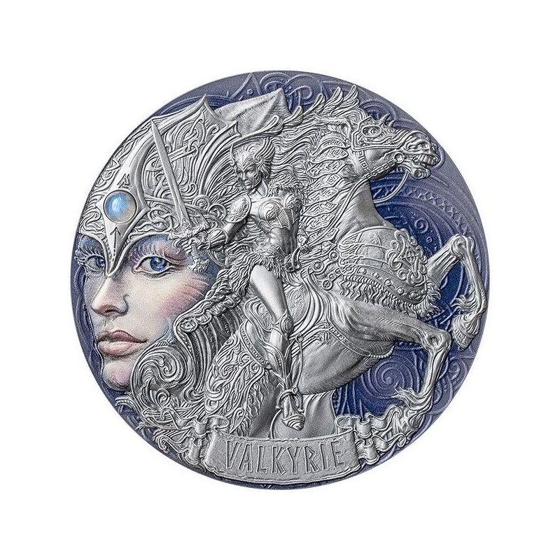 Valkyrie is a first coin from the new Femina Bellator series about stunning warrior maidens. Valkyries are goddesses of Norse mythology who decide the fate of warriors and ride the courageous souls to Valhalla. Valkyries are sensitive and faithful creatures who can be fierce and cold-hearted when needed.