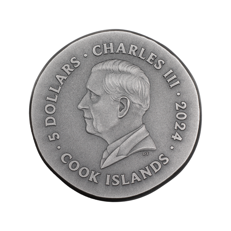 «Numismaatilised ikoonid. Greif" - Cooki saarte 5$ 2024.a. 1 untsine antiikviimistlusega 99,9% hõbemünt