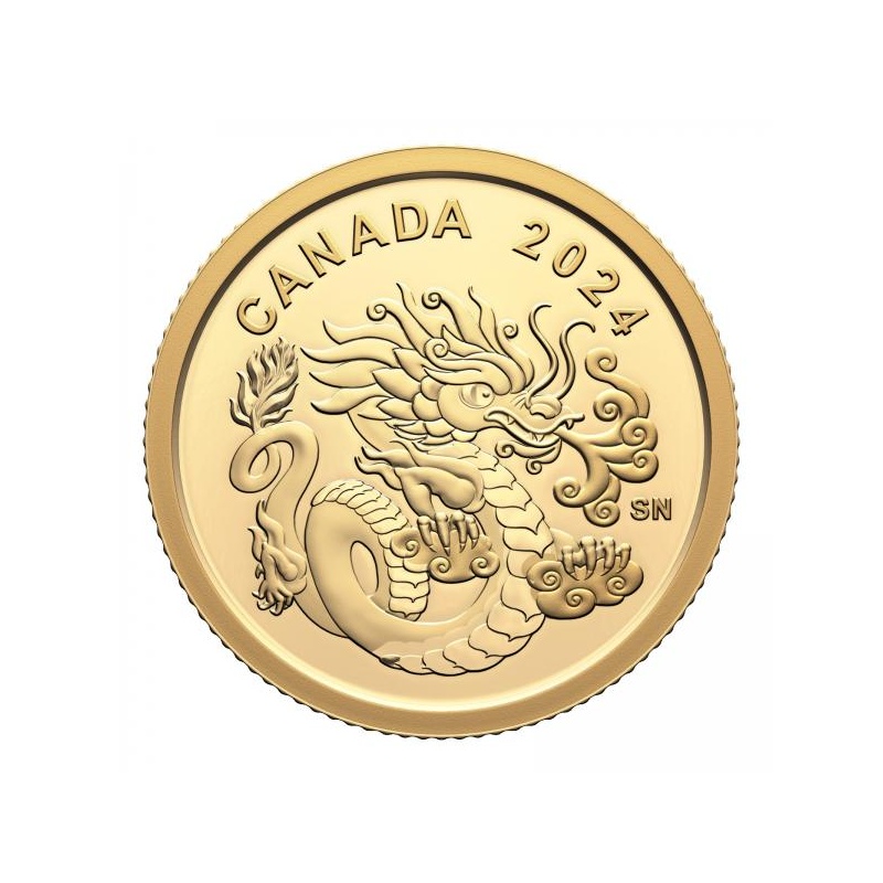 Draakoni aasta 2024 - Kanada 8$ 2024.a. 99,99% kuldmünt 1,580 g