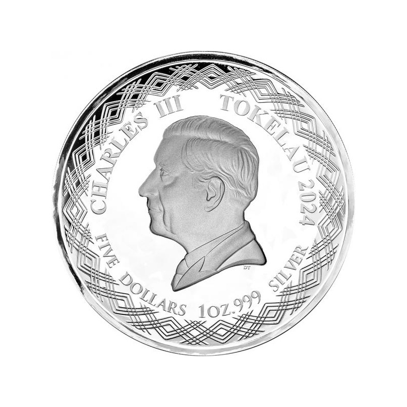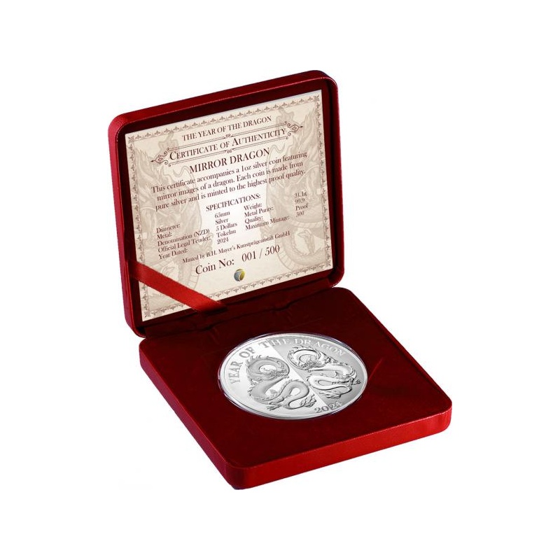 Draakoni aasta 2024 - "Peegelpilt" - Tokelau 5 $ 99,9% hõbemünt, 31,1 g