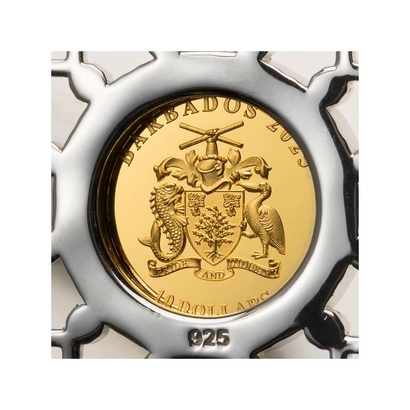 "Elu sümbol - Unenäopüüdja". - Barbadose 10 $ 2025.a. osaliselt kullatud ja rodeeritud 1 g 99,9% kuldmünt / ripats hõbedast raamis.
