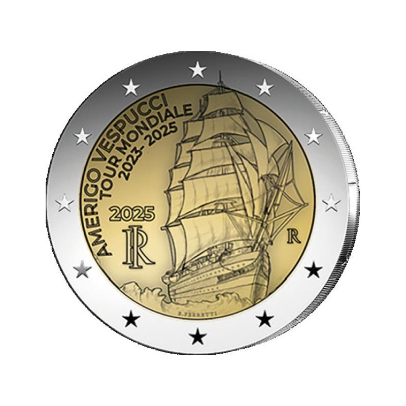 Itaalia 2025 a. 2€ juubelimünt - Amerigo Vespucci õppelaeva maailmareis 2023-2025