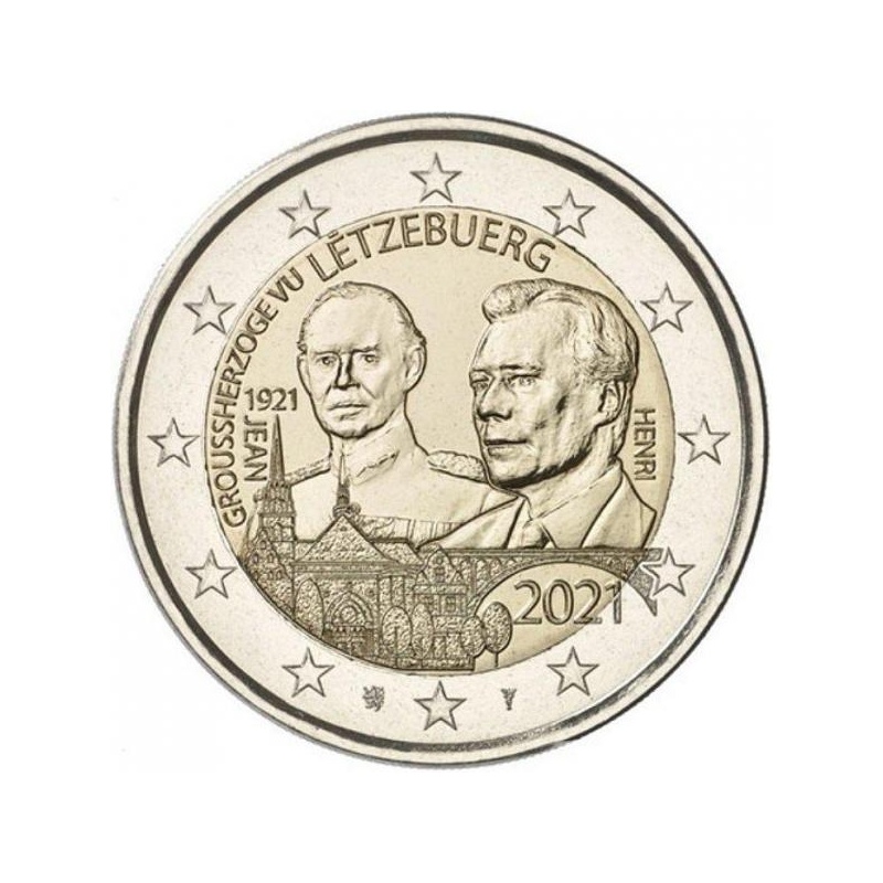 Kirjeldus: mündi vasakul poolel on suurhertsog Jeani kujutis ja paremal suurhertsog Henri kujutis. Kummagi suurhertsogi kujutise juurde on märgitud tema nimi ja suurhertsog Jeani puhul ka sünniaasta – 1921. Suurhertsogite kujutiste all on Luxembourgi linna kontuurid. Vasakul pool on kaarekujuliselt esitatud tekst „GROUSSHERZOGE VU LËTZEBUERG”, mis sisaldab käibelelaskva riigi nime. All paremal on aastaarv 2021. Mündi välisringil on kujutatud Euroopa Liidu lipu 12 tähte.