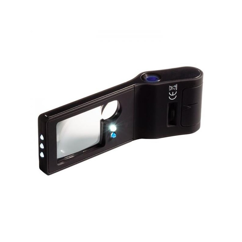 Praktiline LED valgustuse, 15 x mikroskoobi ja 3 ning 10x suurendusega taskuluubil on lisaks ka UV valgustus ja 3 lambiga LED taskulambi funktsioon.