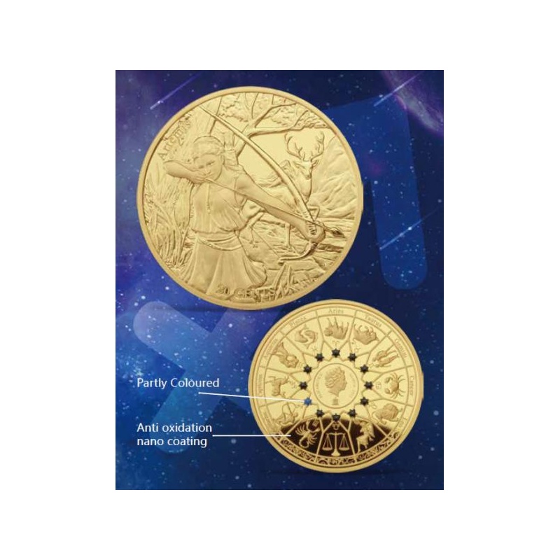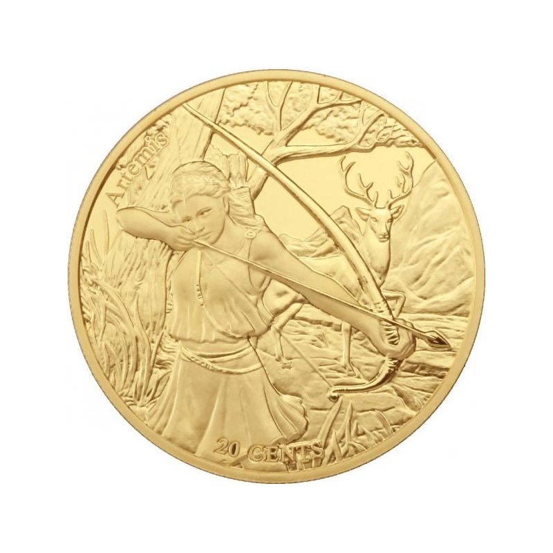 Olümpose jumalused ja sodiaagimärgid. Artemis & Ambur - Samoa 0,2 $ 2022.a. kullatud vasknikkelmünt 25 g