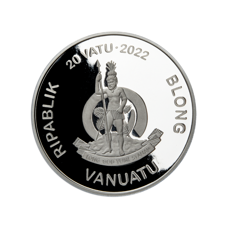 Päästke meie maa. Vanuatu 20 VUV 2022.a. Maailma esimene süsinikuneutraalne 1 untsine hõbemünt