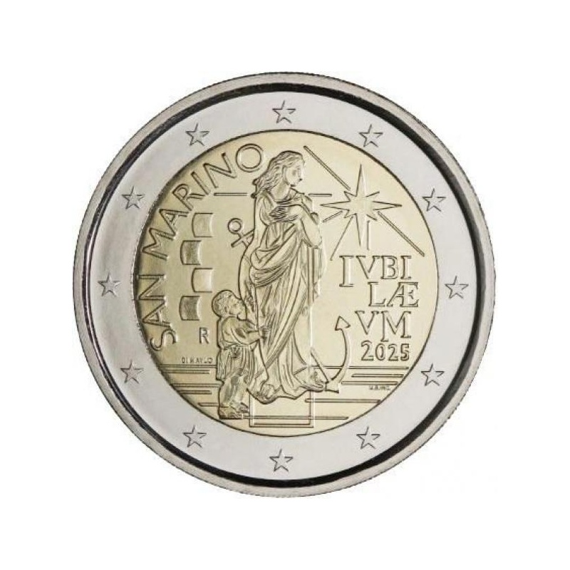 Kirjeldus: mündi keskel on kujutatud naist ankruga, mis sümboliseerib lootust. Naise käe kõrval on laps, kes sümboliseerib inimkonda. Vasakul pool on kiri „SAN MARINO”, neli kandilist purje, Rooma rahapaja tunnus R ning mündi autori nimi „DI MAULO” (Gabriele Di Maulo). Mündi ülemise osa paremal pool on kaheksanurkne täht, kiri „IUBILAEUM 2025” ning alaosas mündi graveerija initsiaalid „M.B.INC” (Marta Bonifacio). Mündi välisringil on kujutatud Euroopa Liidu lipu 12 tähte.