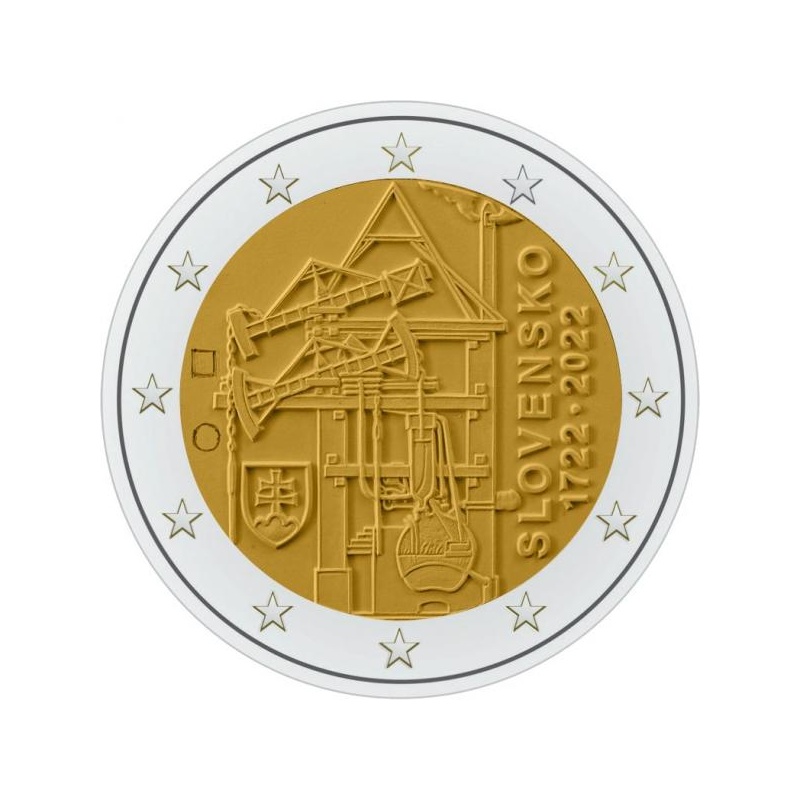 Slovakkia 2022 a 2 € juubelimünt - Mandri-Euroopa esimese kaevandusest vee väljapumpamiseks kasutatud aurumasina ehitamise 300. aastapäev