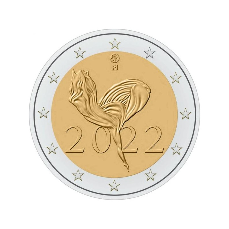 Kirjeldus: mündil on kujutatud hoogsalt ja vabalt liikuvat tantsijat, kes kannab kerget ja hõljuvat riietust, mis toob esile tantsija ilu ja nõtkuse. Mündile on märgitud ka käibelelaskmise aasta 2022, käibelelaskev riik FI ja rahapaja tunnus. Mündi välisringil on kujutatud Euroopa Liidu lipu 12 tähte.