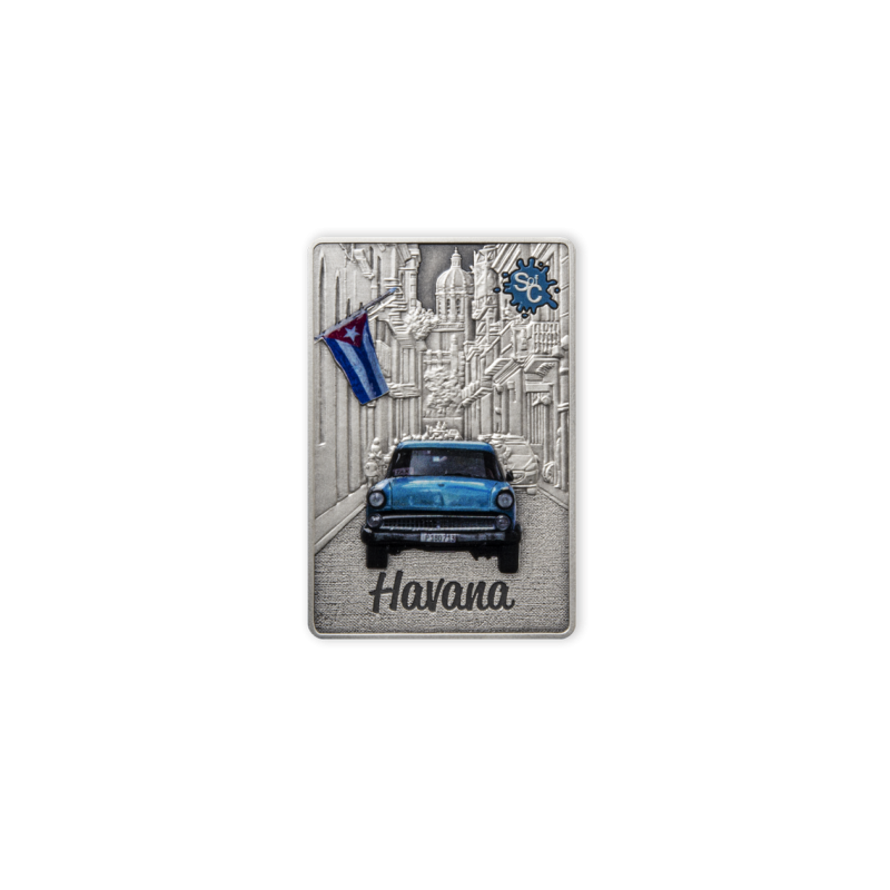 ”Splash of Color” City Edition. Havanna - Samoa 5 $ 2021 v. 99,9% hopearaha väripainatuksella, antiikkipatinointi, 2 unssi