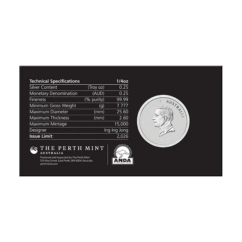 Tämä rajoitetun erän 1 dollarin ja 1 unssin hopeinen Proof-kolikko on valmistettu 99,9 % puhtaasta hopeasta virheettömään Proof-laatuun. Kolikossa on monimutkainen ja eloisa hevosaihe, joka on saanut inspiraationsa kiinalaisesta kiinalaisen uudenvuoden perinteestä. Kolikkoa on saatavilla maailmanlaajuisesti vain 888 kappaletta, ja jokainen kolikko on puisessa kotelossa, jossa on numeroitu aitoustodistus – täydellinen muistoesine tai lahja hevosen vuonna syntyneelle.