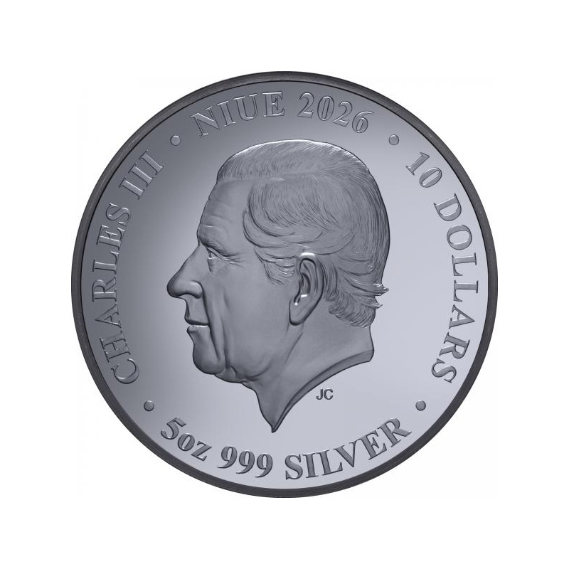 Hevosen vuosi 2026- Niue 10 $ 2026 v. 99,9% hopearaha kultauksella. 5 unssi