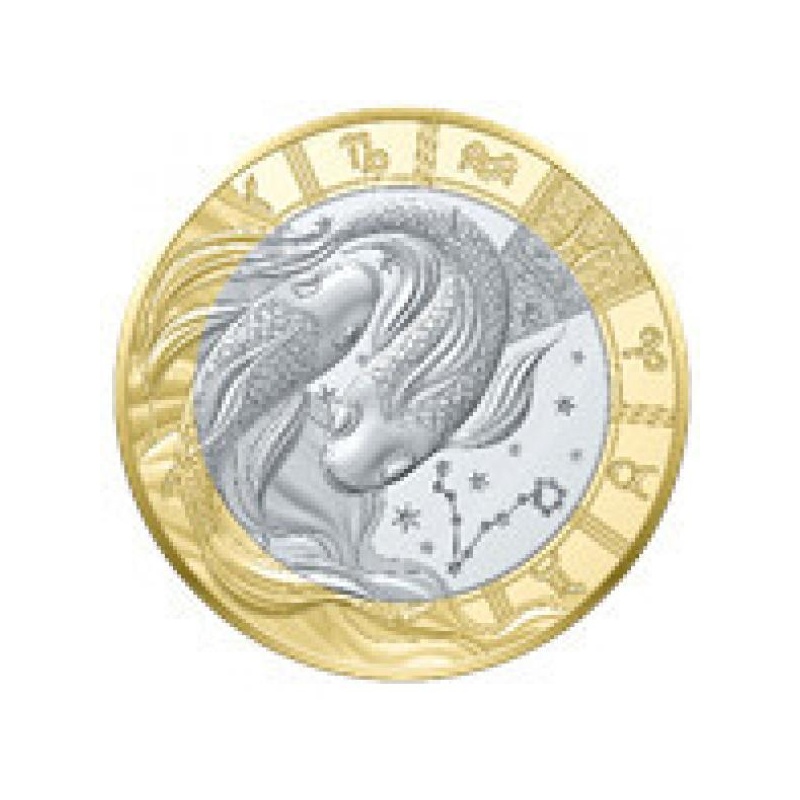 Horoskooppipyörä on kaiverrettu kolikon kullanväriseen kruunuun. Yksi kyltti erottuu taustasta, koska se on muita suurempi ja siinä on hiekkapuhallettu tausta, joka eroaa tasaisemmasta muista. Tämä on Kalojen symboli. Pyörän oikea osa hukkuu aaltoon viitaten veteen, tämän merkin elementtiin. Kaksi pitkäeväistä kalaa ui ympyröissä tässä vedessä. Taustalla tähtitaivas Kalojen tähdistöllä.