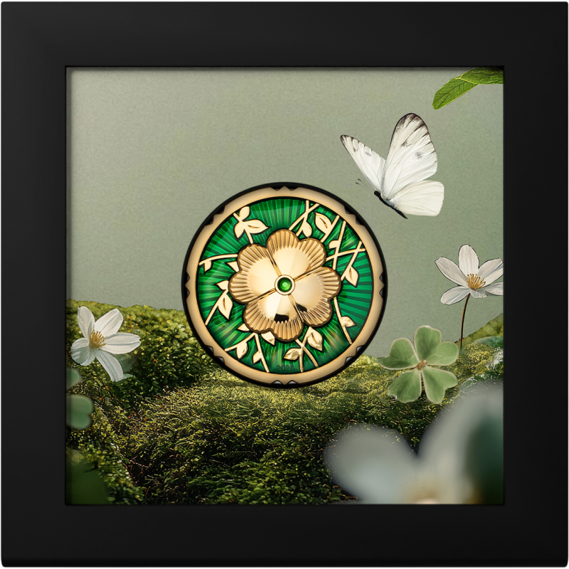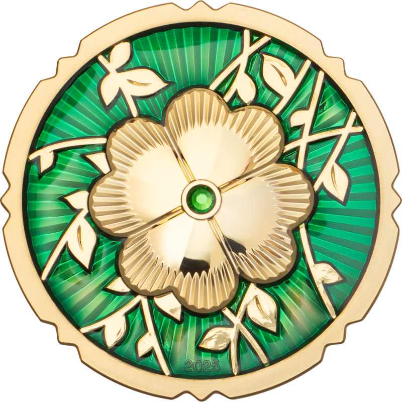 Täysin kullattu, syvänvihreällä emalilla koristeltu ja säihkyvän vihreällä kristallilla koristeltu kolikko ei ole vain onnen ja vaurauden symboli, vaan myös taideteos, joka yhdistää modernin lyöntitekniikan ja hienot materiaalit. Sen poikkeuksellinen muotoilu ja innovatiivinen muoto tekevät siitä ainutlaatuisen helmen jokaiselle keräilijälle.