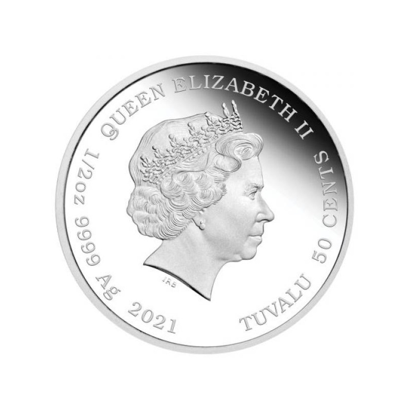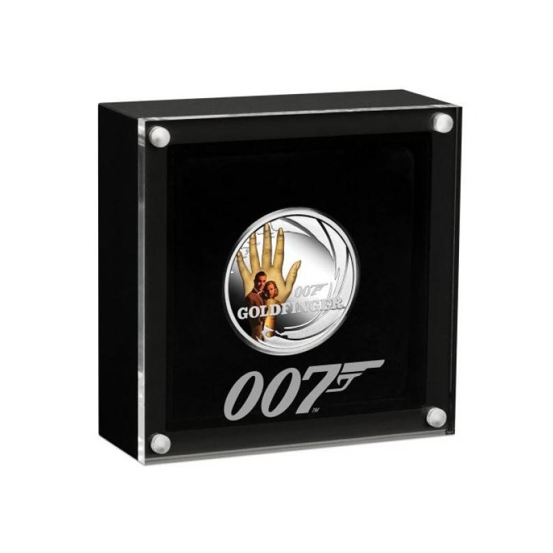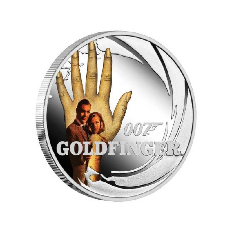James Bond -007 ja Kultasormi. Tuvalu 1/2 $ 2021. 99,9% hopearaha väripainatuksella, 15,53 g