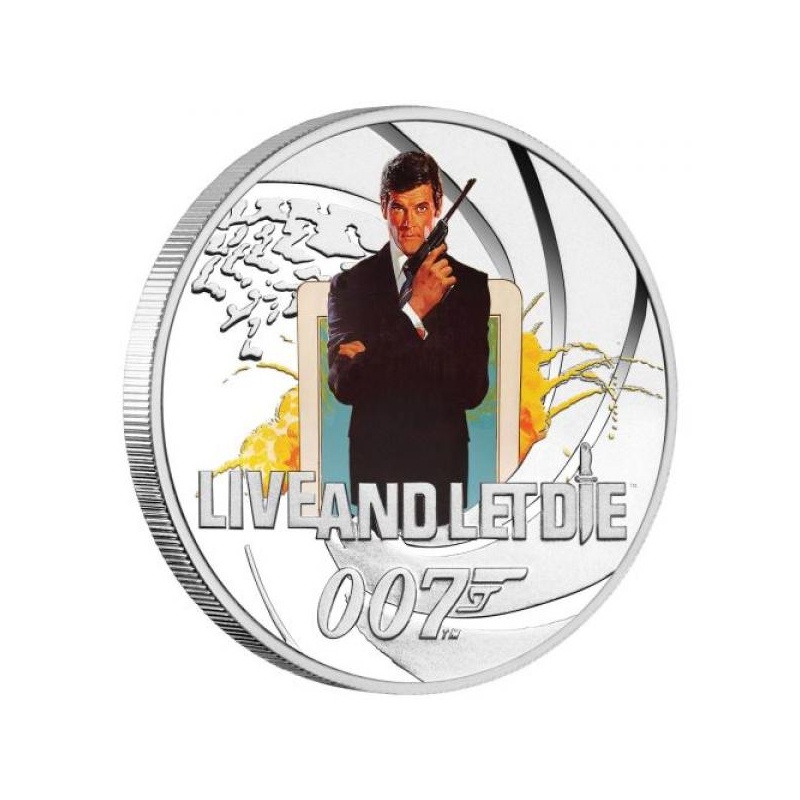 James Bond - Elä ja anna toisten kuolla. Tuvalu 1/2 $ 2021 99,9% hopearaha väripainatuksella, 15,53 g,
