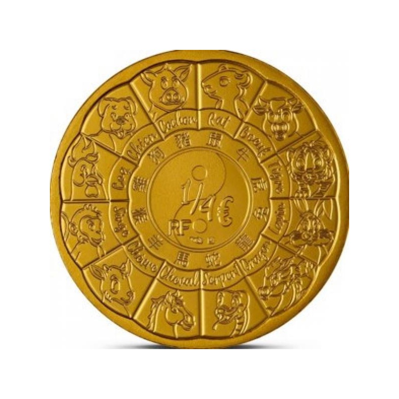 Kääntöpuolella on kaikki kiinalaisen horoskoopin eläimet, jotka on piirretty lapsellisella tavalla Yingin ja Yangin symbolin ympärille. Vuodesta 2018 vuoteen 2029 on kiinalaisen horoskoopin täydellinen kiertokulku. Jokainen näistä kahdestatoista vuodesta korostaa siksi yhden eläimen tästä kalenterista. Nimellisarvo näkyy leikkauksen keskellä ja maininta "RF".