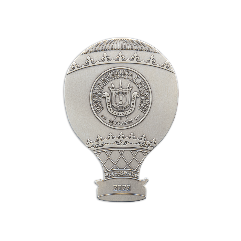 Kuumailmapallo 2023 - Burundi 25. Franki 99,9% hopearaha, antiikpationoiti, 2 unssi