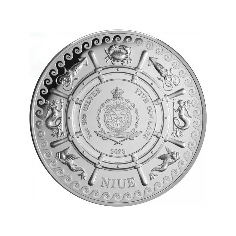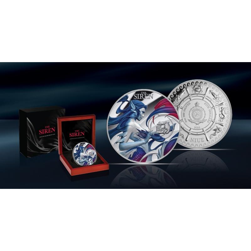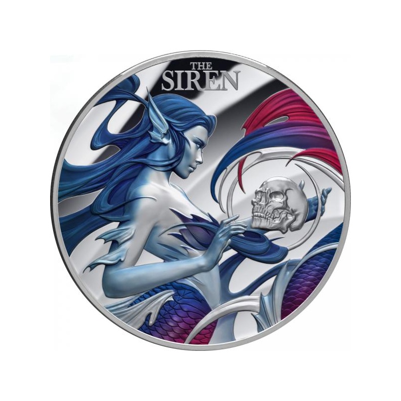 Vuoden 2023 5 dollarin Siren 2 unssin hopearaha on uusin merenkulkualan mestariteoksemme, juhlii myyttistä merisireeniä – tappavan kauneutta. Sireeni on peräisin antiikin kreikkalaisesta mytologiasta - pahasta viettelijästä, joka ottaa puoliksi naisen, puoliksi linnun muodon. Roomalainen runoilija Ovidius kirjoitti, että sireenit olivat aikoinaan Persefonen, jumalatar Demeterin tyttären, ihmiskumppaneita. Kun Hades, alamaailman jumala, varasti Persefonen, Demeter muutti sireenit linnuiksi rangaistuksena. Legenda Sireenistä, olennona, joka houkutteli merimiehiä kuolemaan laulunsa vastustamattoman suloisuudella, levisi edelleen Homeroksen teosten kautta, kun sankari Odysseus kohtasi heidät pitkällä matkallaan takaisin Ithakaan. Nykyaikana Sireeniä kuvataan usein upeana, mutta tappavana merenneitona – pohjimmiltaan houkuttelevana kiusaajana, joka kykenee houkuttelemaan paatuneita merimiehiä kuolemaan hypnoottisella laulullaan. Juuri tämä haluttu syvän asukas on kuvattu loistavasti tämän näyttävästi osuneen Niuen laillisen maksuvälineen hopearahan kääntöpuolella.