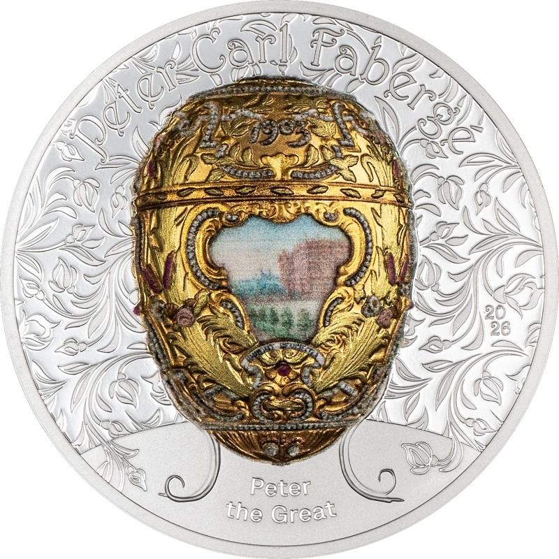Peter Carl Fabergé - Peeter Suuri pääsiäismuna - Mongolia 1000 Tugrik, 2026.v. 99,9% hopearaha emaililla ja kultauksella. 2 unssi
