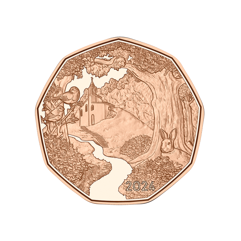 Jätä talvi taaksesi inspiroivan kevätraha, "Getting There", avulla. Kun kävelet kohti aurinkoa, tulet vastaanottavaisemmaksi luonnon kauneudelle ja joka askeleella pääset lähemmäs itseäsi. Kävely on meille niin hyvää, joten miksi et rohkaisisi ystävääsi tai läheistäsi lähtemään polulle lahjaksi tällä upealla pienellä kumppanikappaleella ja talismanilla. Lahja sydämestä, se motivoi heitä lähtemään kevätkävelylle sielun puolesta - ja jos he ovat menettäneet suuntansa, se voi auttaa heitä löytämään tiensä takaisin. Mutta mihin tie meidät vie? Viekö se meidät vielä syvemmälle metsään? Vai johtaako se meidät ulos siitä? Mitä seuraavan harjanteen yllä on? Johtaako polku meidät ylös vuorelle ennen kuin opastaa meidät turvallisesti alas laaksoon? Polku mutkittelee sinne ja tänne, ylös ja alas, ikään kuin se ei itse tietäisi minne se on menossa. Se tekee tämän puhtaasti vaatimattomuudesta, luonnon kunnioittamisesta ja varovaisuudesta. Se on lempeä myös niille, jotka sitä kävelevät. Se vetää meitä eteenpäin, sekä ottaa aikansa että antaa meille aikaa kutsumalla meidät ryyppäämään, pysähtymään ja ihmettelemään. Se näyttää meille maailman ja sen suuret pienet salaisuudet. Kävelemisen merkitystä ei mitata vain sillä, mihin se meidät johtaa. Käveleminen on itsessään merkityksellinen, se energisoi kehoa ja mieltä sekä antaa suuntaa eksyneelle ja hämmentyneelle. Kävely muuttaa käveleviä. Se auttaa meitä näkemään, että elämän polku ei ole jotain peruuttamatonta, vaan osa jatkuvaa prosessia, eräänlainen pyhiinvaellus onneen ja tyytyväisyyteen. Emme ehkä aina tiedä tarkalleen, minne se meidät vie, mutta se vie meidät perille. Kolikon kääntöpuolella oleva polku kiemurtelee kohti viehättävää Falkensteinin kirkkoa, joka on rakennettu kallioon metsässä lähellä St Wolfgangia Salzkammergutin alueella Keski-Itävallassa. Kolikon etupuolella on Itävallan yhdeksän liittovaltion maakunnan vaakunat, jotka antavat kolikolle sen yhdeksänpuoleisen muodon.