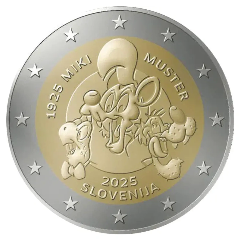 Slovenia 2€ erikoisraha 2025 -Miki Musterin syntymän 100-vuotispäivän kunniaksi