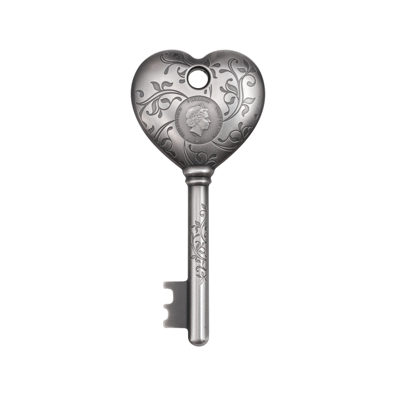 Sydämeeni avain. Cookinsaaret 5 $ 2022.v. 1 unssi 99,9% hopearaha, antiikkipatinointi.