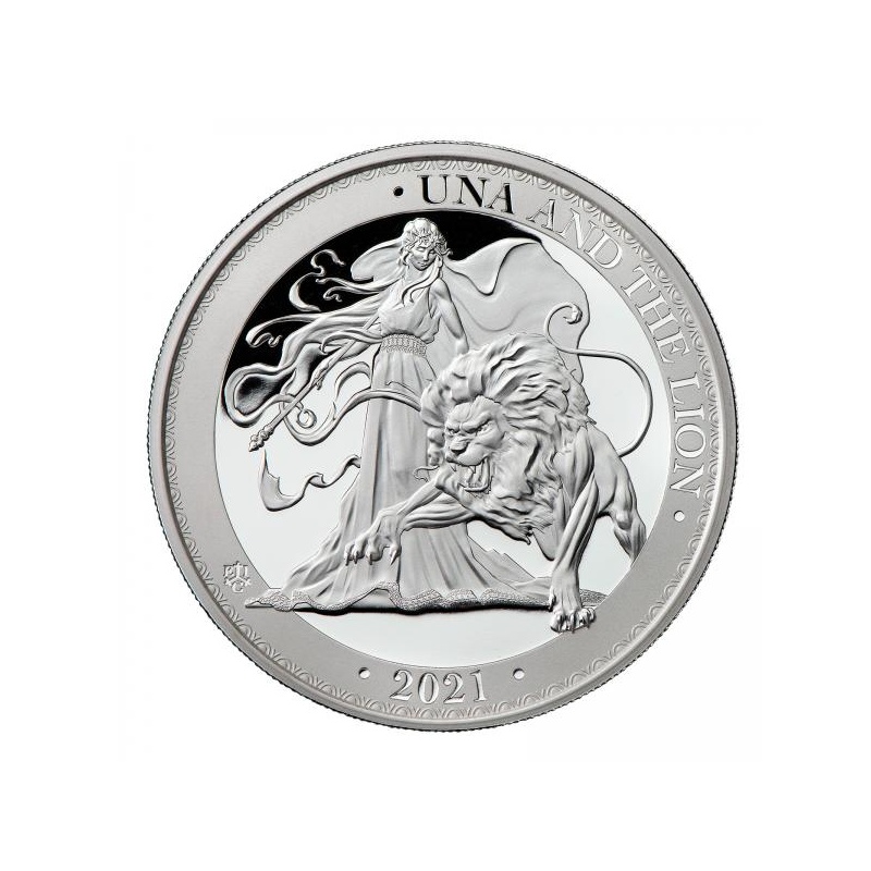 Una& the Lion Saint Helena, Ascension ja Tristan da Cunha 1£ 2021 99,9% hopearaha, 1 unssi.