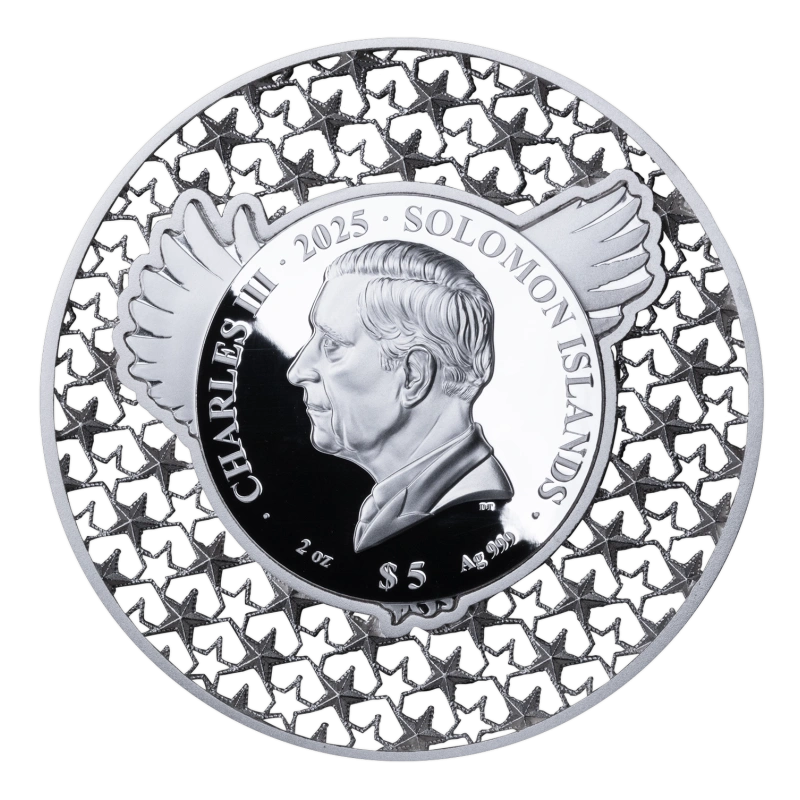 Эта потрясающая монета из чистого серебра весом 2 унции и диаметром 60 мм сочетает в себе уникальную технику филиграни и голографический эффект.