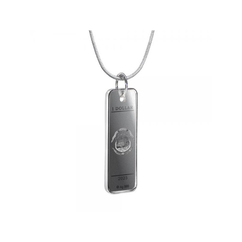 «Белое ветренное платье». Либерия, 1 $, 2025 г. Серебряная 999,9 пробы монета-подвеска с натуральным бриллиантом, 3,8 г.
