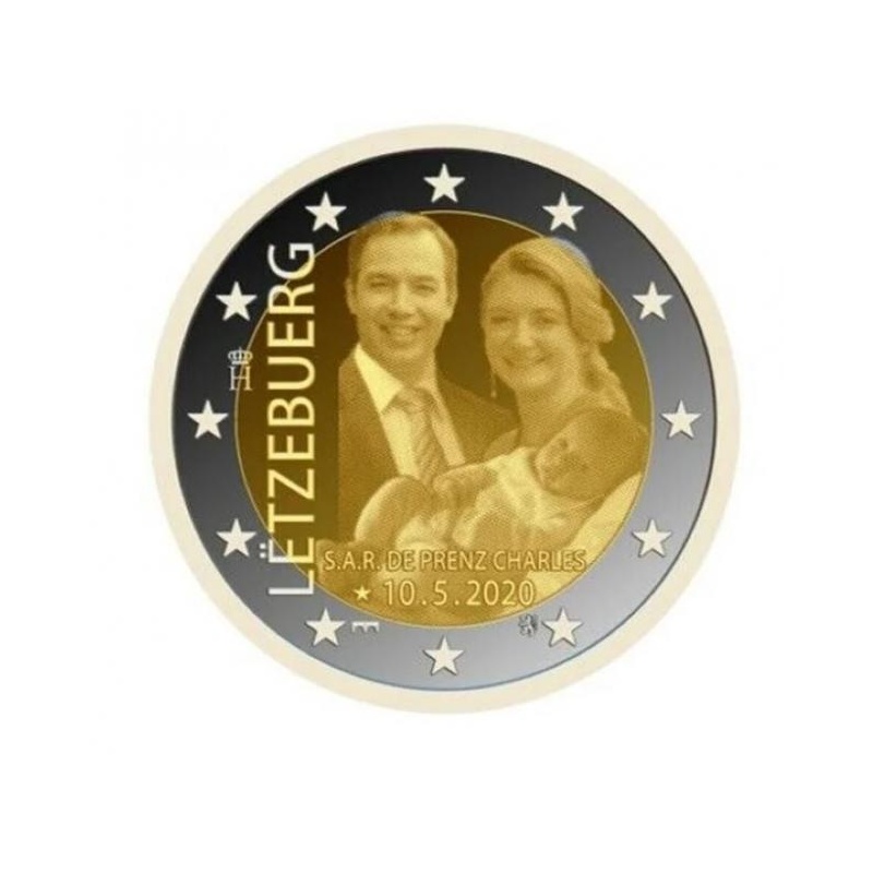 На внутреннем диске изображён принц Шарль на руках родителей — наследного Великого Герцога Гийома и принцессы Стефании. Надпись под изображением: «S.A.R. de Prënz Charles» («Его Королевское Высочество принц Шарль»), второй строкой следует дата его рождения «☆ 10.5.2020». Ниже, уже на внешнем кольце, расположены знаки монетного двора и Люксембурга. Они различны в зависимости от качества чеканки монеты. Слева вертикально — название государства-эмитента «LËTZEBUERG», рядом с ним — монограмма Великого Герцога Анри (коронованная литера «H»).