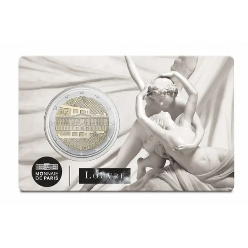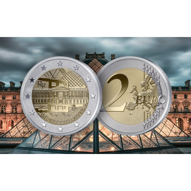 2 € юбилейная монета 2025 г. Франция - Лувр ( 4 x coin card)