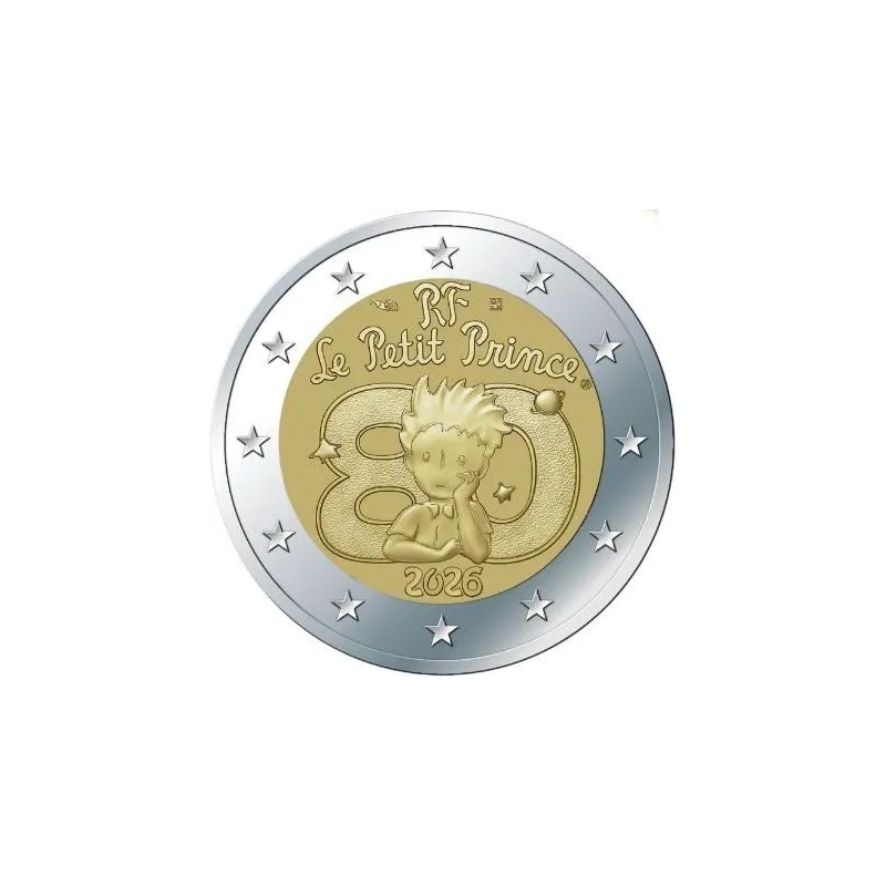 2 € юбилейная монета 2026 г. Франция - посвященнo 80-летию выхода «Маленького принца» во Франци. ( coin card)