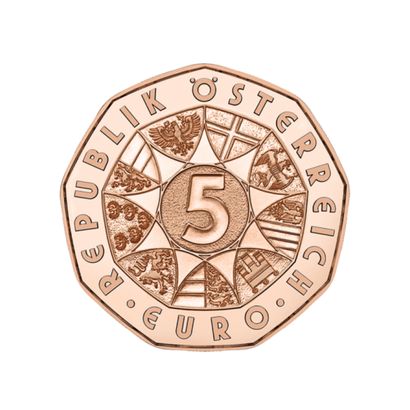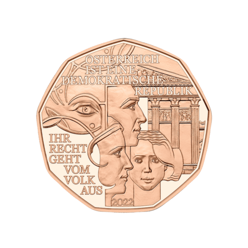 "Демократия» - Австрия, 5 €, 2022. г., медная монета, 8,9 г.