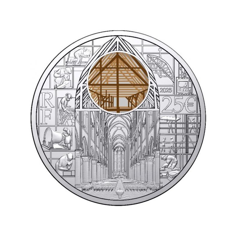 "Французское мастерство. Собор Парижской Богоматери." - Франция, 25 €, 2024. г. 99,9% серебряная монета, 62,2 г.