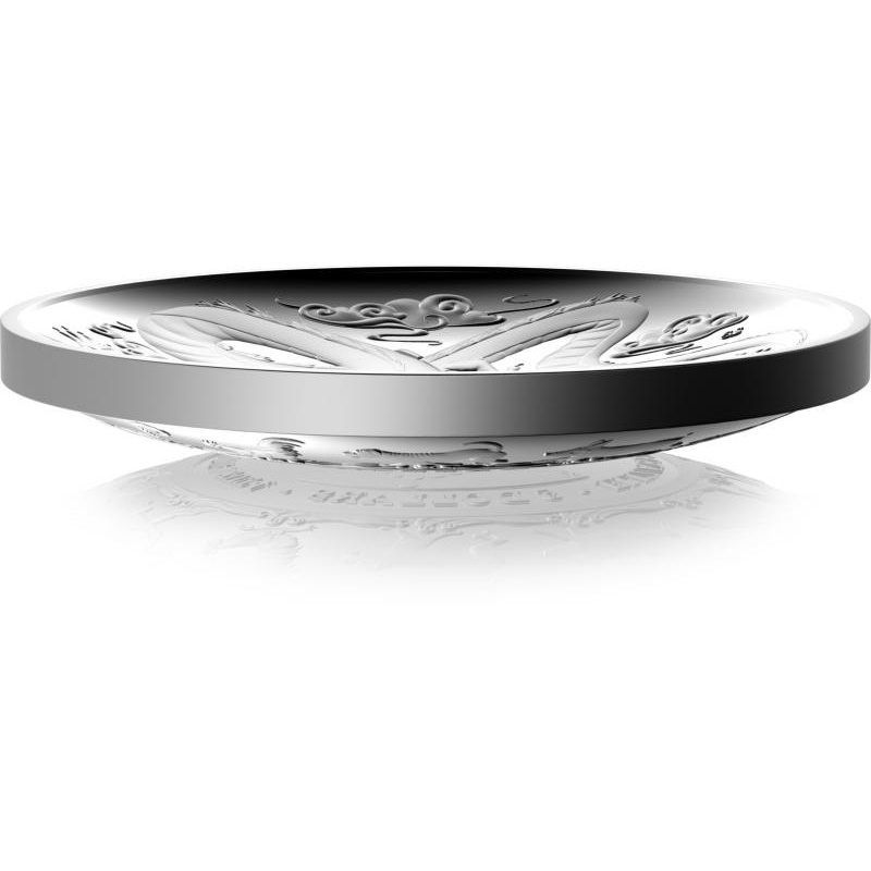Эта изумительная монета из чистого серебра, весом 1 унция, размером 65 мм с классическим изображением зеркального отражения самого себя.
