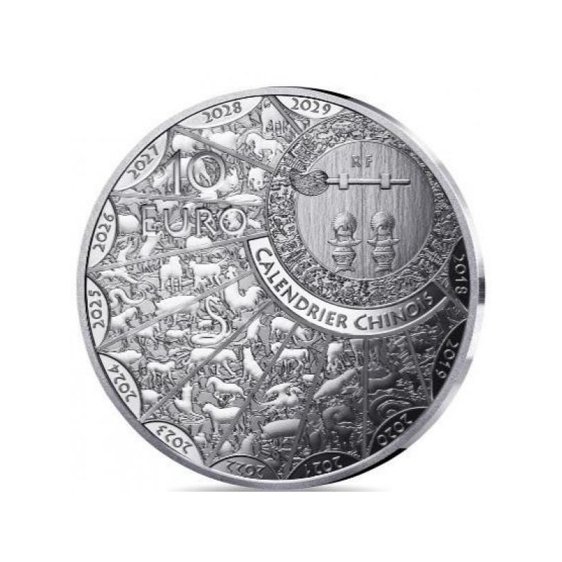 "Год Змеи - 2025. г. Лунный Календарь.". - Франция, 10 €, 2025. г., 99,9% серебряная монета, 22,2 г.