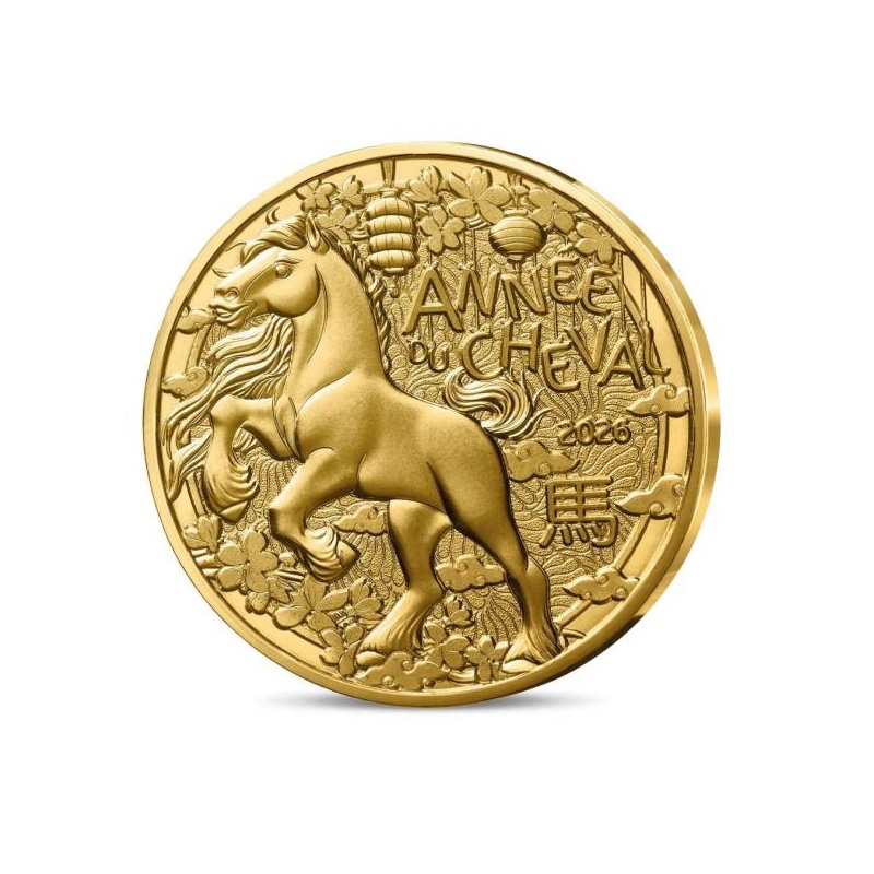 В центре аверса монеты скачущая лошадь. Кажется, что она пересекает кольцо, на котором выгравированы традиционные китайские мотивы. Движущаяся лошадь напоминает о характеристиках представителей этого знака: энергия, независимость и страсть. На контурах дизайна изображены год 2026 и надпись «Год лошади». На реверсе изображены все животные китайского зодиака на экране, окружающем традиционную дверь храма. Полный цикл китайского зодиака начинается в 2018 году и длится до 2029 года. Каждый из двенадцати лет в этом периоде представлен одним из животных зодиака. Номинал можно увидеть в верхнем левом углу, а слово «RF» размещено на двери.