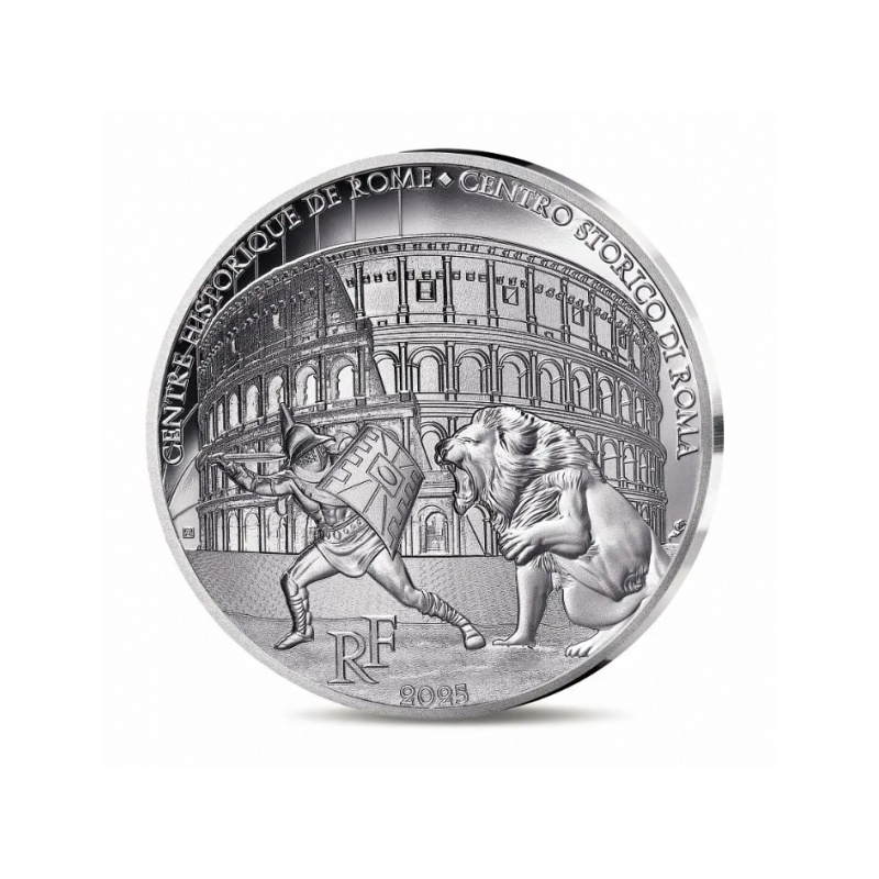 "ЮНЕСКО. Колизей, исторический центр Рима." - Франция, 10 €, 2025. г. ,99,9% серебряная монета, 22,2 г.