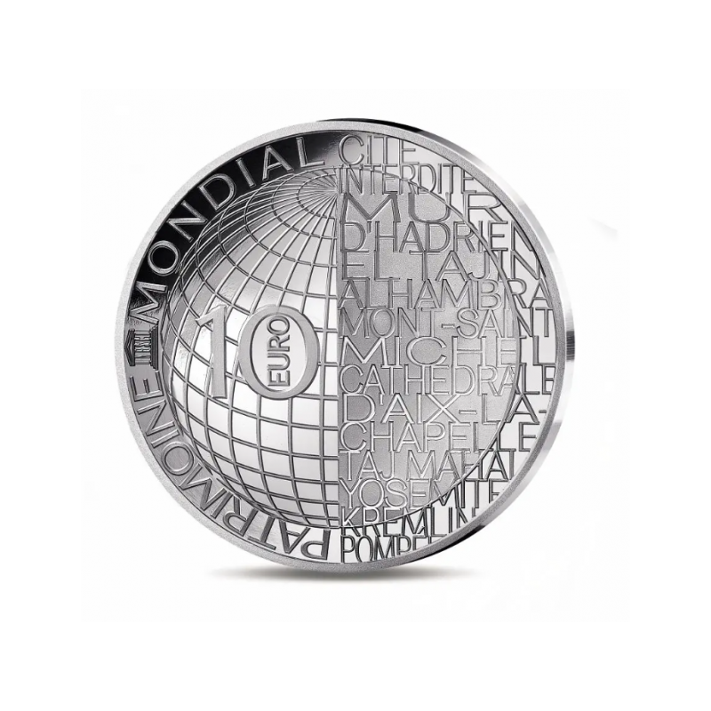 Оборотная сторона является общей для всех монет серии ЮНЕСКО . Она представляет собой земной шар с параллелями и меридианами на левой стороне и надписями основных объектов, классифицированных как всемирное наследие ЮНЕСКО, на правой стороне. Эти надписи как будто выгравированы на камне, что перекликается с Розеттским камнем. Левая сторона шара окружена логотипом ЮНЕСКО, а также маркировкой «Всемирное наследие». Номинал выгравирован на левой стороне шара, идеально сочетаясь с параллелями и меридианами.