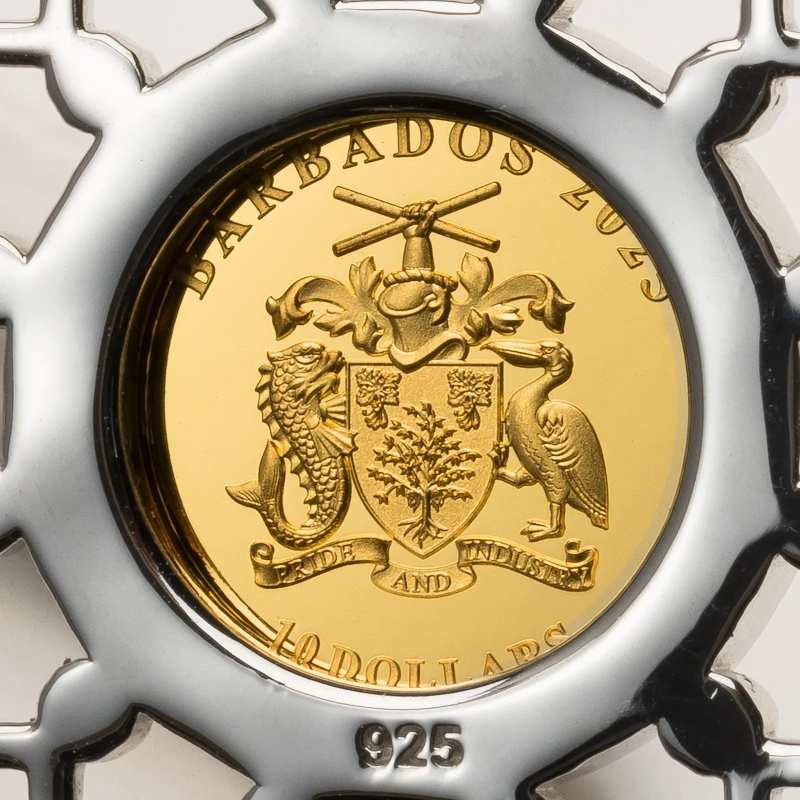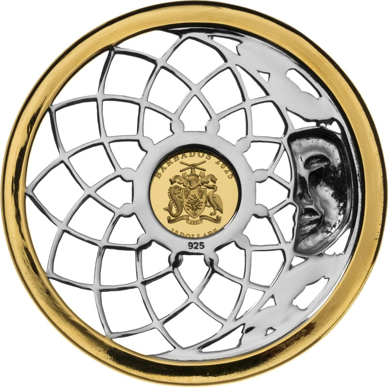 "Символы Жизни. Ловец снов". Барбадос 10 $ 2025 . Монета -подвеска из 1 г. золота и 7 г. серебра.